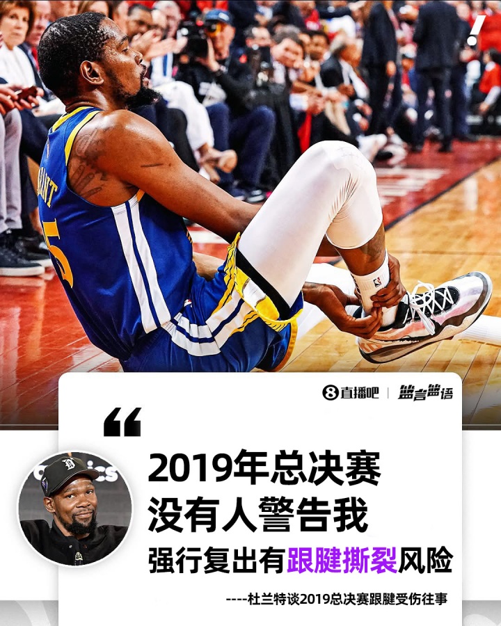 杜兰特:2019年总决赛中没有人警告我强行复出会有跟腱撕裂的风险